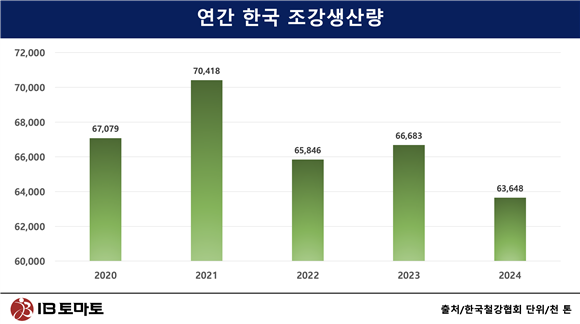 세계철강협회에 따르면 지난해 국내 조강 생산량은 6360만톤으로 2023년 생산량(6670만톤) 대비 4.6%가량 감소했다. 철강산업을 둘러싼 환경 변화로 자연스럽게 생산량 구조조정이 이뤄지는 효과가 나타나고 있다. 철강업체는 생산량을 조정하기 위해 설비 폐쇄 등 조치를 이어가고 있다.