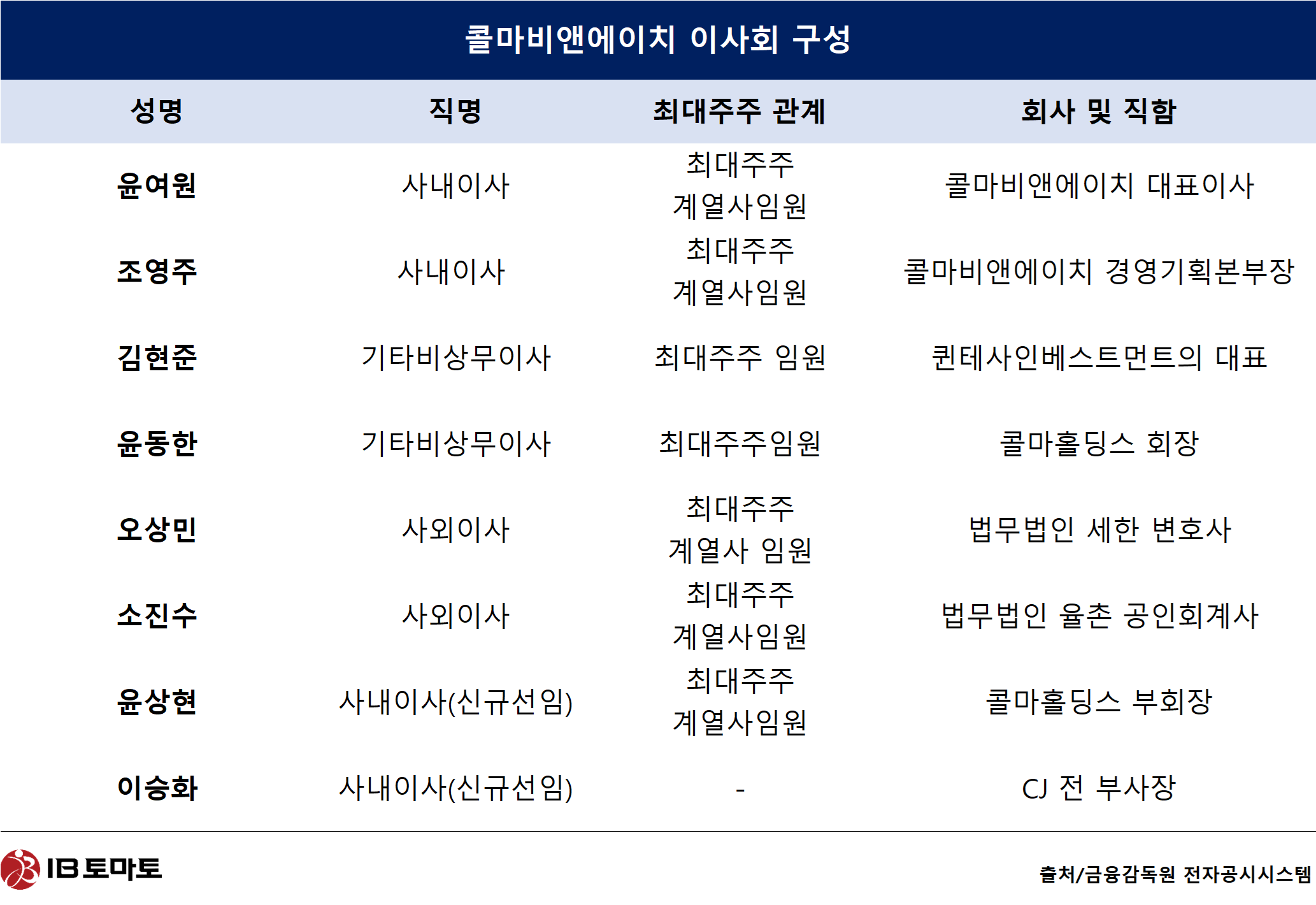 콜마비앤에이치(200130) 이사회를 장악하며