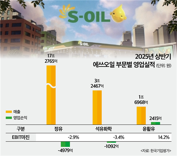 17일 금융감독원 전자공시시스템에 따르면 에쓰오일의 정유 부문은 올 상반기 매출 17조3900억원을 기록했지만, 영업손실은 3655억원에 달했다. 정유 부문에서만 4979억원의 적자가 발생했고, 석유화학 부문 역시 1092억원의 손실을 냈다.