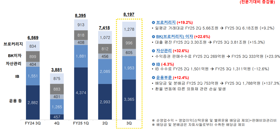 2025년 3분기 한국투자증권 사업 수익 추이 (사진=한국투자증권)
